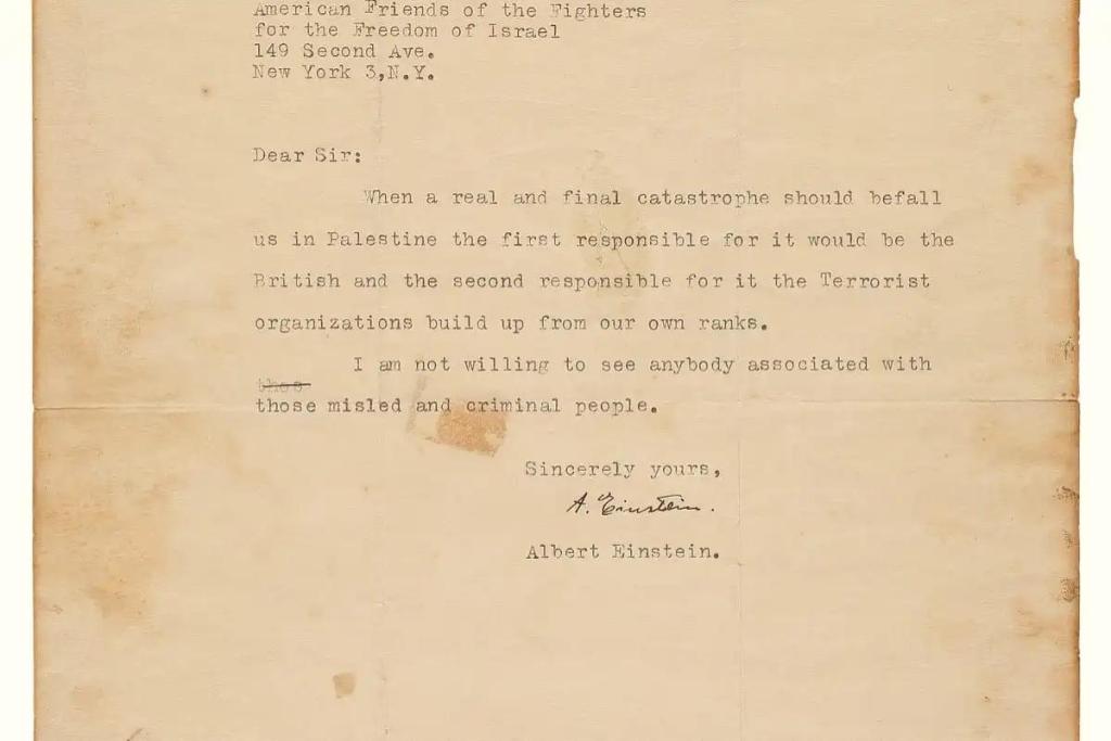 — original letter (below) which Einstein wrote in 1948 to Shepard Rifkin, the Executive Director of American Friends of the Fighters for the Freedom of Israel and a representative of the Stern Group based in New York.