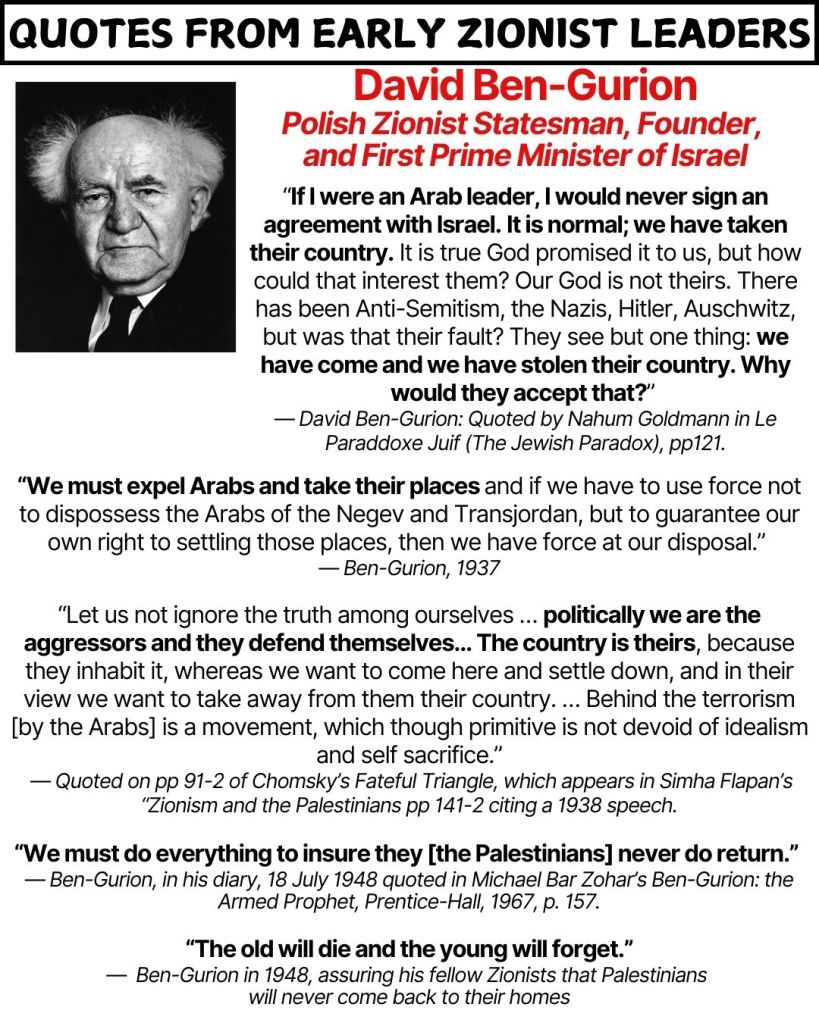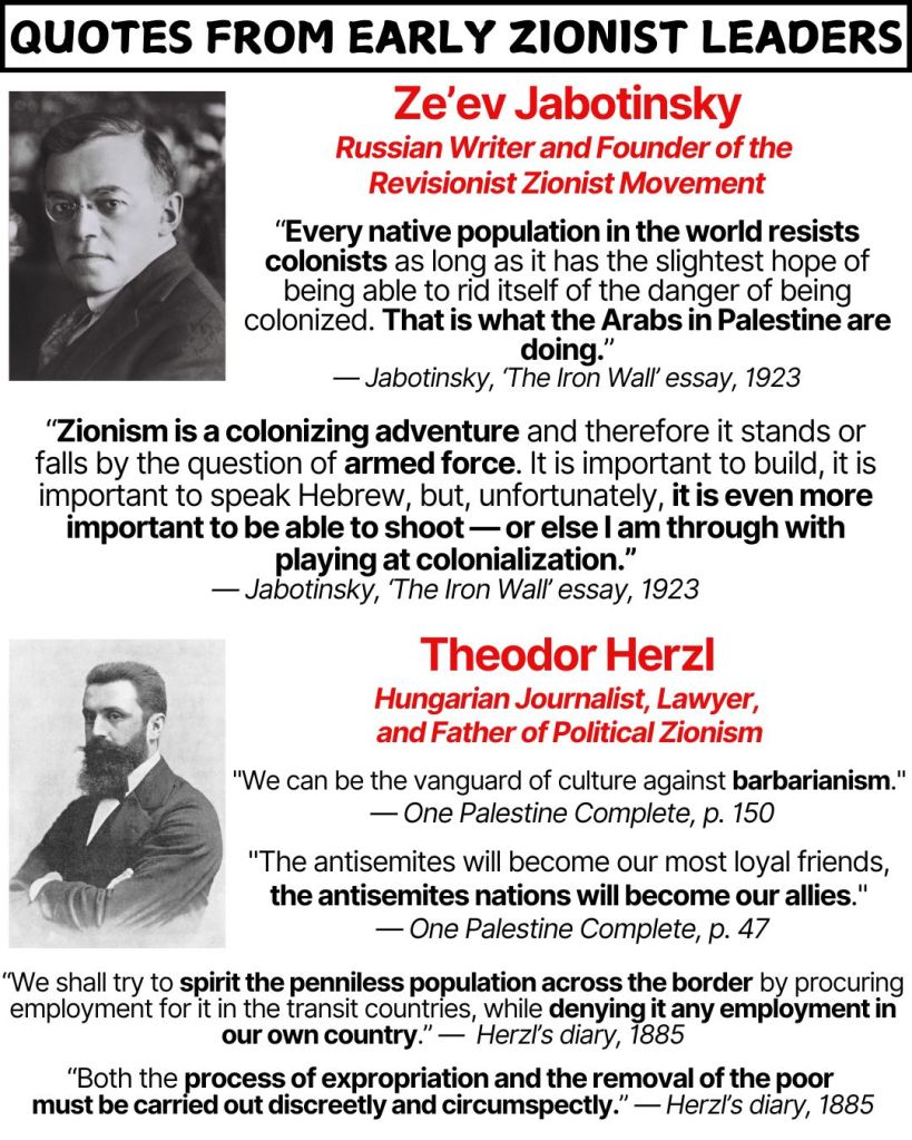 EARLY ZIONIST LEADERS ON THEIR COLONIZATION OF PALESTINE
