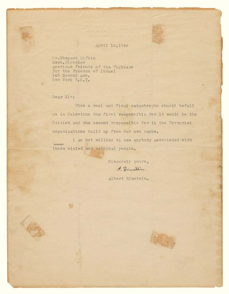 ALBERT EINSTEIN ON PALESTINE