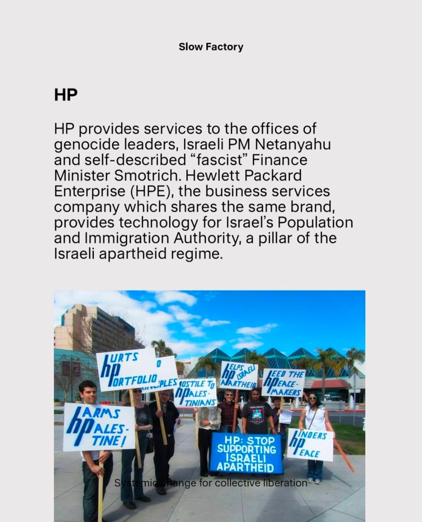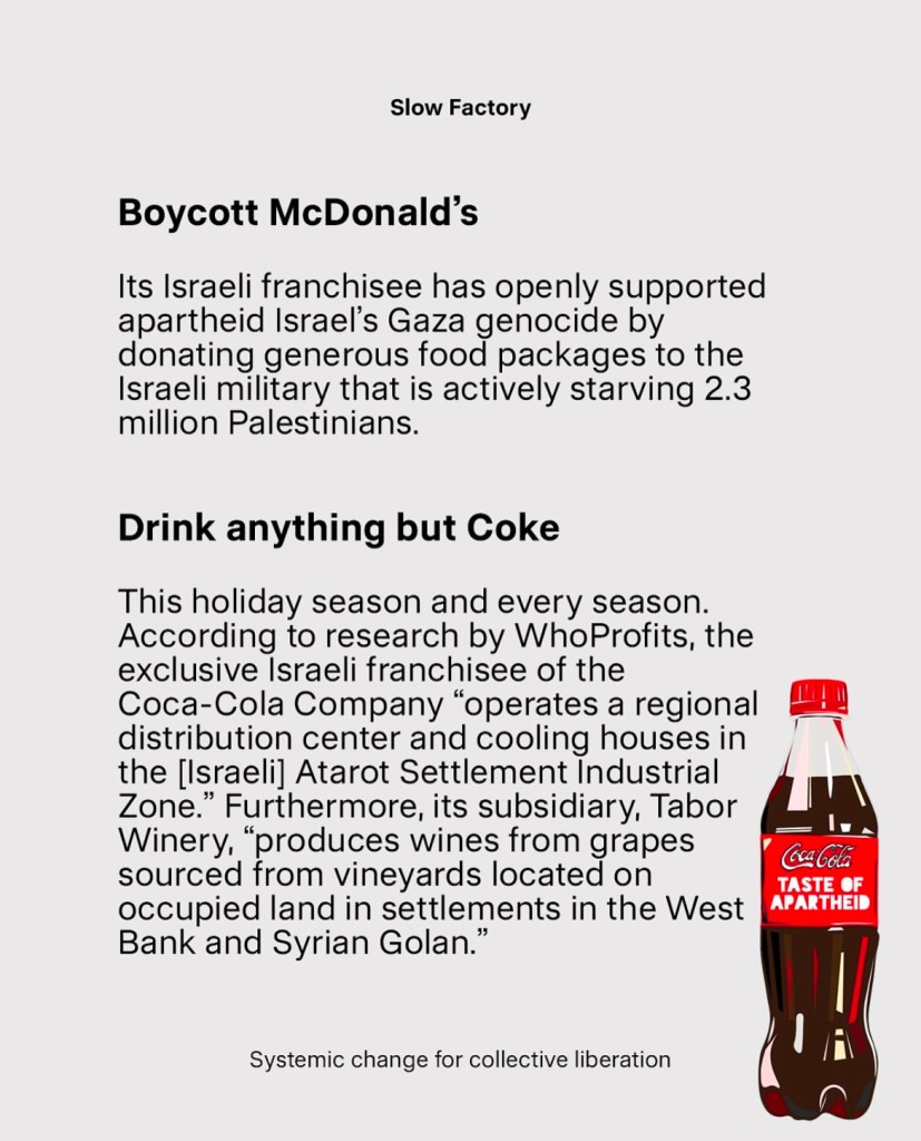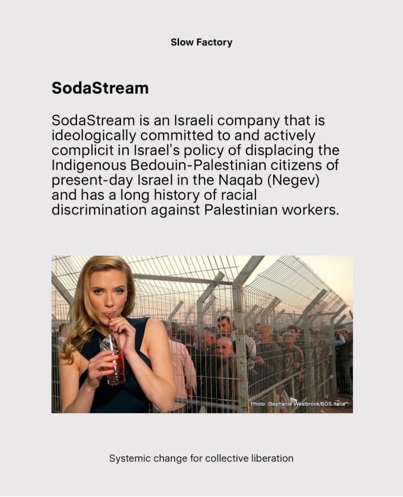 Why these companies are being targeted by the BDS Movement (slides below from The Slow Factory and BDS Movement on Instagram):