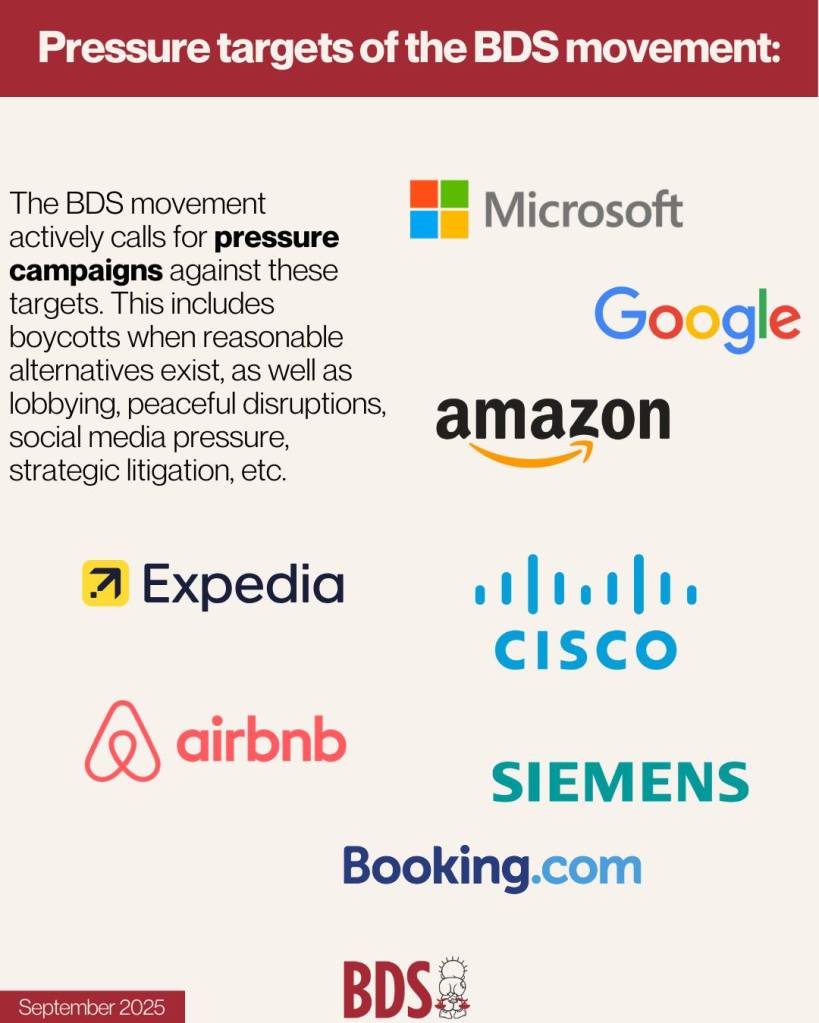 Below are BDS boycott targets, as of September 2025. Please note that some targets are specific to the US as the companies do not operate or sell in Canada. Targets are subject to change so keep checking the BDS website and/or Instagram page to stay updated!