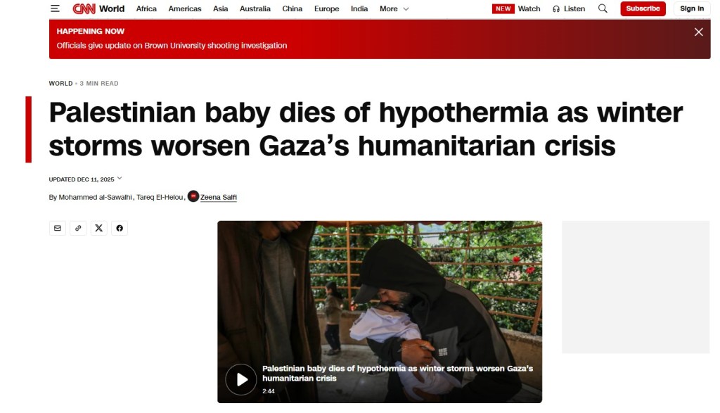 Dec 17/25: STORMS IN GAZA cause flooding in tents. Dozens of infants and children FREEZE TO DEATH as ISRAEL BLOCKS entry of tents, mobile homes and other essential aid.